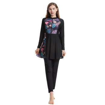 2024新しいプリントパッチワークスーツスプリットシーサイドイスラム教徒保守的な女性の水着
