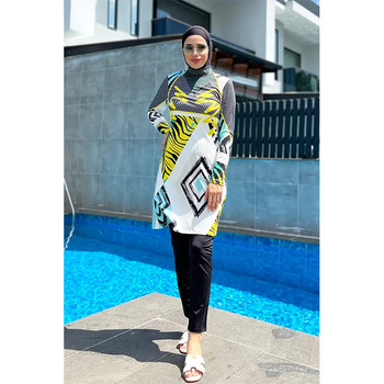 2024 nuevo traje de baño de retales estampado Split Seaside musulmán conservador para mujer