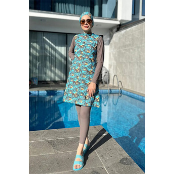 2024 nuevo Burkini para mujer, deportes de playa, conjunto estampado a prueba de sol, traje de baño conservador musulmán modesto de ajuste holgado